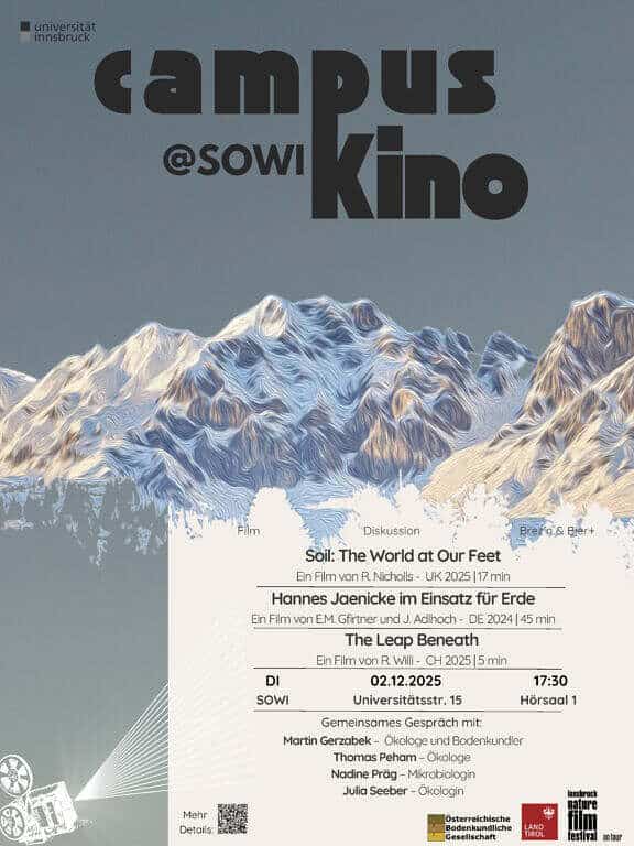 In collaboration with the University of Innsbruck, Campus Cinema offers a unique academic setting for film screenings throughout the year. Selected festival films are showcased on campus, allowing students and faculty to explore environmental narratives in an engaging atmosphere. Each screening is followed by expert-led discussions from different fields, fostering interdisciplinary dialogue that connects academic research with cinematic storytelling.